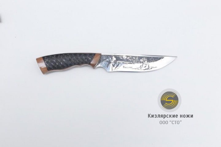 Нож " Охота" изготовленный ООО "Сто" (г. Кизляр). Представленный образец является ножом туристическим и не относится к холодному оружию. Соответствует требованиям ГОСТ Р 51501-99"Ножи туристические и специальные спортивные. Общие технические условия" с изменением №1(87-СТ) от 1 июля 2005г.
